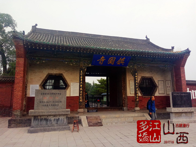 2、游览平遥古城后,沿108国道东北行11公里,见路标即右转东行1公里过铁路、高速公路涵洞即到镇国寺,行驶15分。